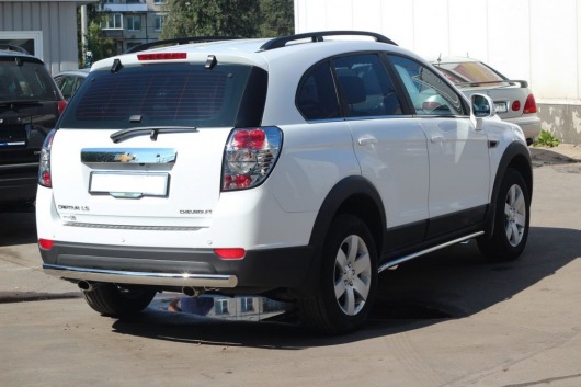 Труба на задний бампер Chevrolet Captiva защищает задний бампер автомобиля от различных механических повреждений при столкновениях на дороге и неудачных парковках. А кроме этого, защита заднего бампера для Шевроле Каптива — это дополнительная деталь тюнинга.