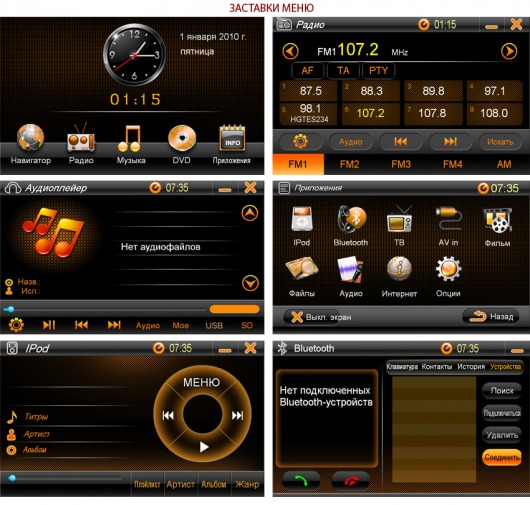 Вы можете просматривать на экране магнитолы информацию с карт памяти и iPod, а также всех типов компакт дисков. На корпусе системы есть разъемы, которые позволяют подключать к ней разные внешние устройства, например, камеру заднего вида или датчики парковки. На экране головного устройства будет отображаться дистанция. Также вы сможете подключить цифровой ТВ-тюнер, благодаря чему у вас в машине появятся 8 центральных каналов.