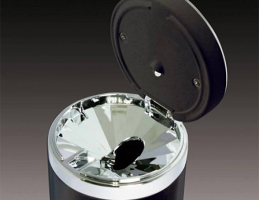 Пепельница с подсветкой FE-24 - оригинальная компактная пепельница для крепления в подстаканник. Подсветка приятного голубого цвета. Заряд подсветки осуществляется через солнечную панель. Внутри в пепельнице предусмотрен держатель для сигареты, что подарит Вам дополнительное удобство при курении. Габариты: высота - 110 мм, диаметр - 70 мм.
