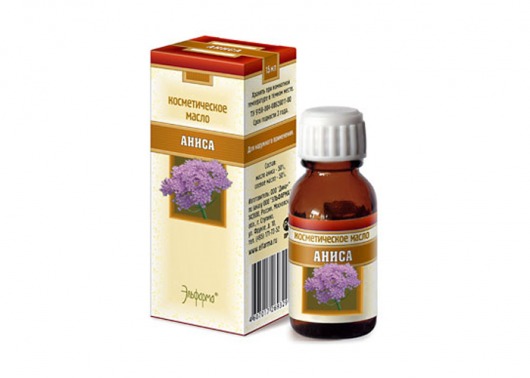 Натуральное косметическое масло «Эльфарма» на 50% состоит из эфирного масла аниса и на 50% из соевого масла. В отличие от чистого эфирного масла, которое нужно смешивать с базовым, такое косметическое масло сразу же можно использовать в чистом виде. Объем флакона: 15 мл.