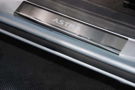 Накладки на пороги дверей Opel Astra не только обеспечивают защиту верхней и боковой поверхности внутреннего порога, но и отлично вписываются в интерьер автомобиля, подчеркивая его стиль и индивидуальность. C монтажом проблем не возникнет: установка накладок на внутренний порог для Opel Astra производится на штатные места с помощью скотча 3M.