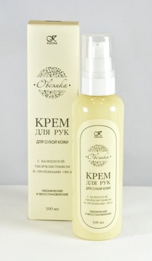 Крем «Овсянка» (Клеона) подходит для ежедневного интенсивного ухода за сухой кожей рук. Богатый олигосахаридами, овсяный протеин увлажняет кожу, придает коже эластичность, защищает от потери влаги. Молочная кислота смягчает загрубевшие участки кожи. Экстракты календулы и тысячелистника успокаивают раздраженную кожу, ускоряют заживление мелких царапин и порезов. Канделильский воск защищает кожу от обезжиривания и обезвоживания при использовании моющих средств.