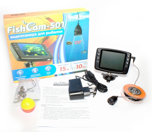 FishCam-501 — портативная подводная камера, которая идеально подходит и рыболовам, и исследователям глубин. Вы сможете наблюдать за всем, что происходит на глубине, вплоть до того, как рыба попадается на крючок. Видеокамера подходит для зимней рыбалки, т.к. выдерживает температуру до -20ºС, и оснащена ИК-подсветкой на случай слабого освещения и плохой видимости.