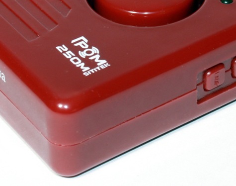 ГРОМ-250М имеет вид небольшой коробочки с ребристыми боками, удобно размещается в ладони и не выскальзывает. Корпус изготовлен из достаточно крепкого пластика и спокойно выдерживает разумные физические нагрузки (например, несильные удары или падения с небольшой высоты).