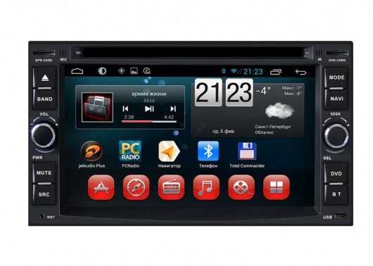 Штатное головное мультимедийное устройство позволяет прослушивать аудиофайлы различных форматов, просматривать видео (в том числе в HD-формате) и фотографии как с внутренней памяти устройства (8 Гб), так и с внешних носителей и  SD карт памяти. Вы также можете слушать аналоговое или интернет-радио или смотреть видео онлайн. Или подключить цифровой ТВ-тюнер, чтобы смотреть цифровые каналы прямо на экране устройства. А еще у вас есть возможность подключить DVD-привод и смотреть фильмы и управлять DVD-меню прямо с сенсорного экрана магнитолы.
