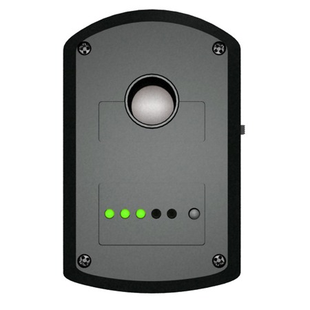 Индикация уровня заряда аккумулятора. Детектор скрытых видеокамер BugHunter Dvideo имеет 4 светодиода на задней стороне корпуса. По количеству горящих зеленых светодиодов можно ориентировочно оценить уровень заряда встроенного аккумулятора.