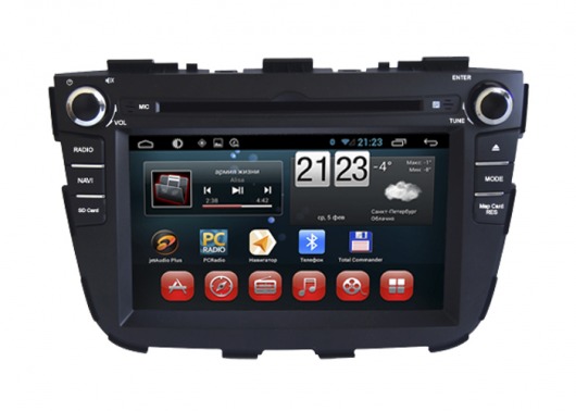 Штатное головное мультимедийное устройство позволяет прослушивать аудиофайлы различных форматов, просматривать видео (в том числе в HD-формате) и фотографии как с внутренней памяти устройства (8 Гб), так и с внешних носителей и  SD карт памяти. Вы также можете слушать аналоговое или интернет-радио или смотреть видео онлайн. Или подключить цифровой ТВ-тюнер, чтобы смотреть цифровые каналы прямо на экране устройства. А еще у вас есть возможность подключить DVD-привод и смотреть фильмы и управлять DVD-меню прямо с сенсорного экрана магнитолы.