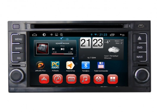 Штатное головное мультимедийное устройство позволяет прослушивать аудиофайлы различных форматов, просматривать видео (в том числе в HD-формате) и фотографии как с внутренней памяти устройства (8 Гб), так и с внешних носителей и  SD карт памяти. Вы также можете слушать аналоговое или интернет-радио или смотреть видео онлайн. Или подключить цифровой ТВ-тюнер, чтобы смотреть цифровые каналы прямо на экране устройства. А еще у вас есть возможность подключить DVD-привод и смотреть фильмы и управлять DVD-меню прямо с сенсорного экрана магнитолы.