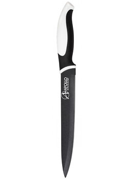 Нож для мяса Apollo Elsinore. Длина лезвия – 20 см. Толщина лезвия – 1.8 мм. Лезвие выполнено из нержавеющей стали 2Cr13с антибактериальным покрытием. Ручка выполнена из PP + TPR plastic.