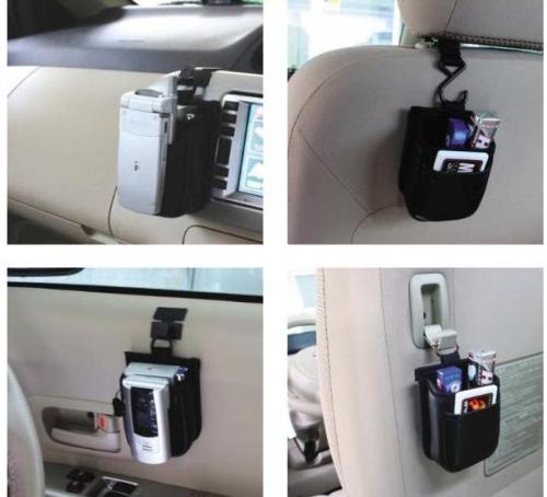 Дополнительный карман JK-29 имеет два кармашка. Приспособление может быть закреплено двумя способами, для этого в комплект входит специальное крепление в виде двух соединенных крючков (такой способ подойдет для крепления кармана на шток подголовника или на решетку обдува), а так же крепление в виде приклеивающегося на двухсторонний скотч металлического крючка (такой способ подойдет для закрепления кармана в любом удобном месте). Размеры кармана составляют 80х35х100 мм.