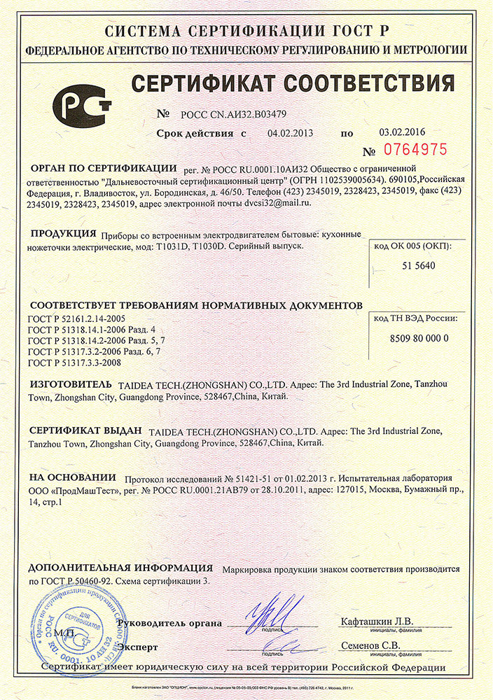 Ножеточка Taidea 1031 имеет 4 наклонные прорези: 2 с левой стороны — для стадии грубой заточки, 2 с правой стороны — для ежедневного поддержания ножей. Благодаря использованию в приборе точильных дисков с алмазным напылением обеспечивается их долговечность и высокая эффективность заточки лезвий, причем, как стальных, так и керамических.