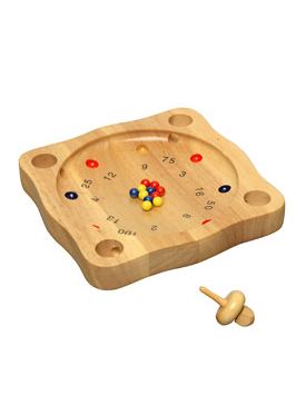 Шарики размещаются в центре доски и первый человек, вращая волчок, пытается загнать шарики в ямки или лузы, находящиеся по краям доски. Каждая ямка имеет определенное количество очков, помимо этого красные шары удваивают очки, а синие вычитают. Шары, попавшие в лузы по краям поля, выбывают из игры. Если одним ходом загоняется сразу 6 шаров, то игрок имеет право внеочередного хода.