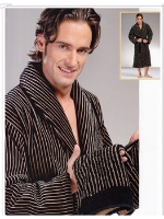 Благородный махровый халат высокой плотности. Изысканная вертикальная тонкая полоска, глубокие цвета, внешняя сторона велюровая, а внутренняя - петельчатая махра с легким массажирующим эффектом. Для настоящих мужчин - любящих стиль и комфорт!