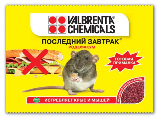 Зерновая приманка для мышей и крыс VALBRENTA CHEMICALS Родефакум "Последний завтрак", 200 г