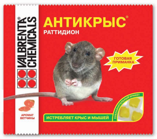 Готовая приманка для грызунов VALBRENTA CHEMICALS РАТТИДИОН с удобной дозировкой — это доступное и надежное средство для борьбы с мышами и крысами в любых местах обитания. Аппетитные мягкие брикеты с ароматом ветчины и ядовитыми действующими вещестами учитывают пищевые предпочтения грызунов, так что ни одна крыса или мышь не устоит перед таким "угощением".