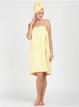 Женский набор состоящий из порео и полотенца, важный атрибут при посещении бань, саун и бассейнов, особенно общественных. Порео оснащено резинкой-липучкой для надежной фиксации на груди и регулировки размера. Его можно использовать и как домашнюю одежду.