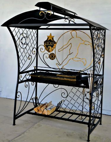 Кованый мангал для дачи с крышей "Футбол-ЦСК" — превосходный вариант для профессионалов, настоящих ценителей дачного отдыха и заядлых болельщиков "ЦСК". Этот большой стационарный мангал с крышей, изготовленный из высокопрочного металла с применением ручной художественной ковки, сочетает в себе практичность, функциональность и оригинальный дизайн. Он станет той самой "изюминкой", которая выделит ваш дачный участок среди прочих.