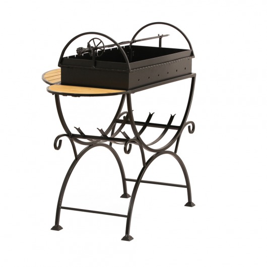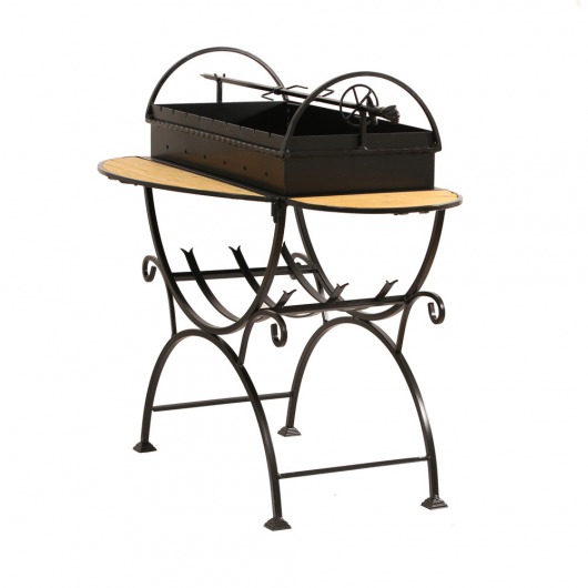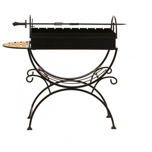 И это не единственные преимущества дачного кованого мангала МСД. Несмотря на изящность и компактность, его конструкция отличается особой прочностью. Стойка усилена элементами ручной ковки, а ящик мангала изготовлен из цельного листа жаростойкой стали толщиной 2 мм на гидравлическом прессе. Такая жаровня выдерживает высокие температурные нагрузки в течение долгого времени и не деформируется. А спереди и сбоку жаровни расположились 2 удобных деревянных столика (один из них съемный), которые можно использовать как подставки для посуды или вместо разделочных досок.