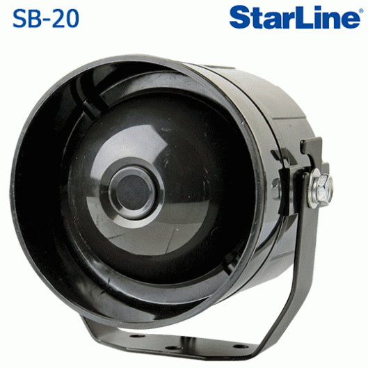 Сирена StarLine SB-20 - динамическая однотональная cирена, предназначенная для звукового оповещения о режимах работы автомобильной охранной сигнализации. Данная автомобильная сирена оборудована аккумулятором для автономной работы. Отличается мощным звучанием в 112 Дб. Корпус выполнен из ударопрочного пластика и полностью влагозащищен.