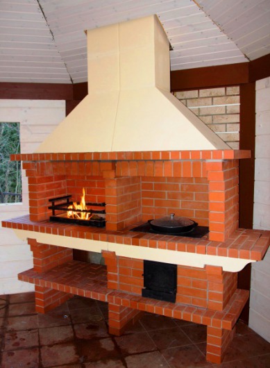Модульная садовая печь со столешницей собирается из готовых блоков — натурального прямоугольного кирпича, скрепленного стальной арматурой и бетоном. Такая конструкция надежна и долговечна, печь не требует особого ухода и сохраняет при этом свой внешний вид в течение многих лет.