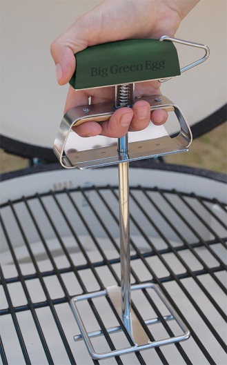 С помощью этого держателя вы сможете легко и быстро подцепить и снять горячую чугунную или стальную решетку с гриля Big Green Egg. Теперь вам не придется дожидаться, пока решетки остынут — их можно будет поменять сразу же, не рискуя обжечься или испачкать рукавицы.