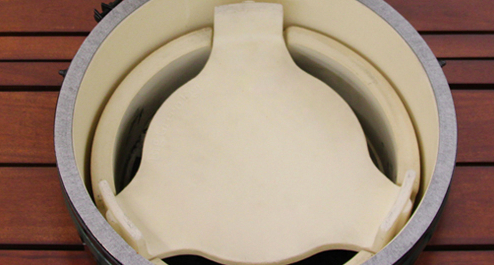 Чтобы использовать гриль Big Green Egg XXL для томления или запекания блюд на непрямом огне, необходим керамический рефлектор. Он отсекает от продуктов огонь, исходящий от углей, и превращает гриль в печь. Используйте рефлектор совместно с гриль-решетками.