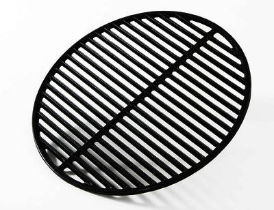 Круглая чугунная решетка идеально подходит для керамических грилей Big Green Egg Medium — она быстро нагревается до высоких температур и в течение долгого времени поддерживает тепло, не выделяя при этом никаких токсичных веществ и посторонних запахов. Решетка имеет 2 рабочие поверхности: одна сторона гладкая, вторая ребристая (для того, чтобы на ваших блюдах-гриль появлялись аппетитные темные полоски).