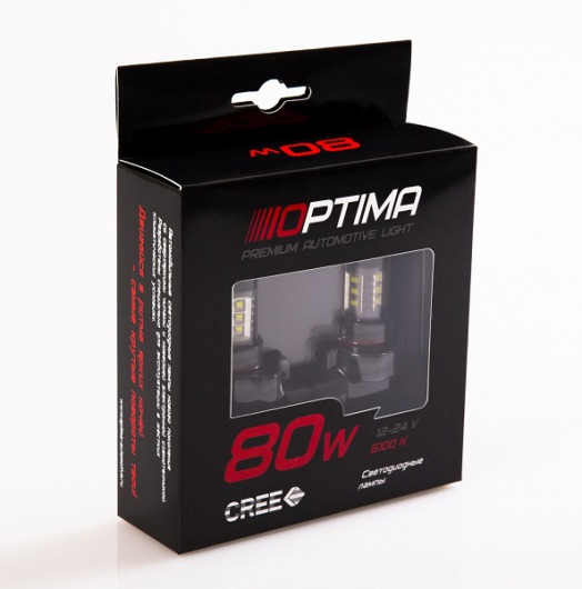 Светодиодные лампы Optima Premium HB4 (9006) Cree 9-32V 80W 5100K – это лампы с увеличенной светоотдачей. Такие показатели достигаются благодаря использованию современных технологий CREE. Лампы Optima работают эффективнее, характеризуются более мощным световым потоком.