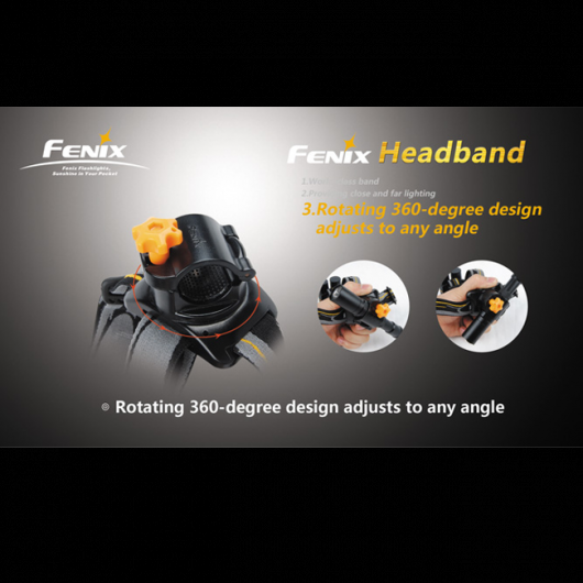 Во время активного отдыха наприроде очень часто оказывается, что ручной фонарь не позволяет выполнять те или иные действия, поскольку занимает руки своего владельца. Компания Fenix постаралась решить эту проблему и выпустила наголовное крепление Fenix Headband. Этот аксессуар представляет собою систему из двух эластичных лент для фиксации на голове. Диаметр лент можно свободно регулировать в широком диапазоне, чтобы подогнать размер по голове пользователя. Благодаря тому, что крепление состоит из двух пересекающихся лент, оно надежно крепится на голове и не сползает во время эксплуатации фонаря.