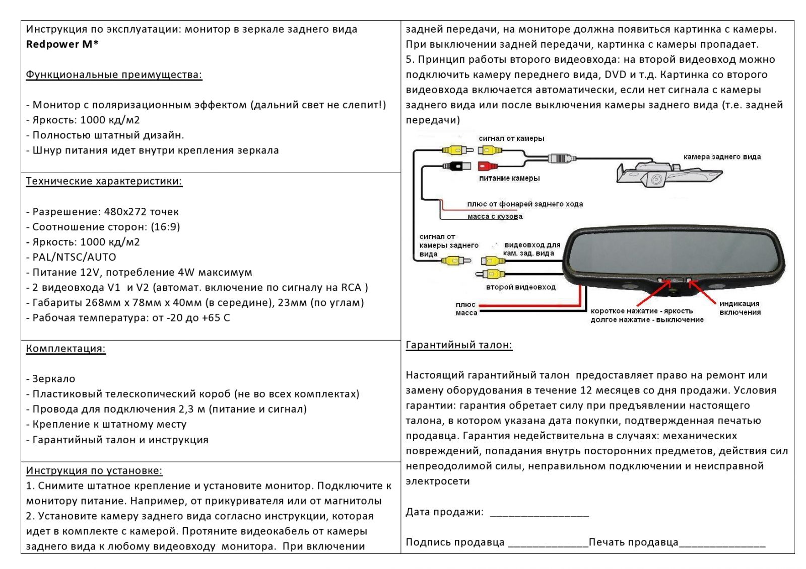 Вопросы и отзывы про Зеркало с монитором 4,3" Redpower M43 LED с креплением №10