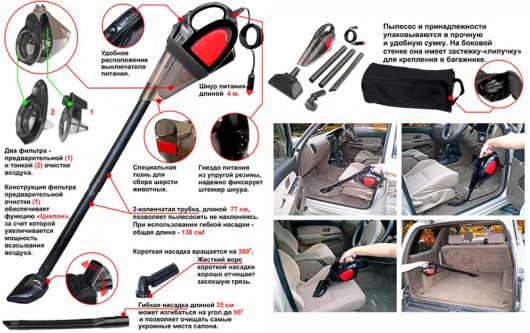 Автомобильный пылесос AL-6049 обладает большой мощностью всасывания - и сделают уборку в салоне автомобиля максимально комфортной при минимальной затрате времени. Доступна уборка в укромных, неудобный местах автомобиля. С таким пылесосом Вам даже не придется наклоняться - только удобство и эффективная чистка.