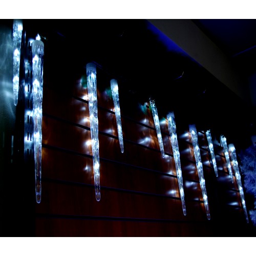 Благодаря множеству огоньков и оригинальной светодинамики объект украшенный сосульками выглядит очень эффектно. Светодиодные сосульки очень долговечны, они выдерживают жгучие зимние морозы, ветра, снегопады и оледенение поэтому ими можно украшать и интерьер, и объекты, находящиеся на улице.