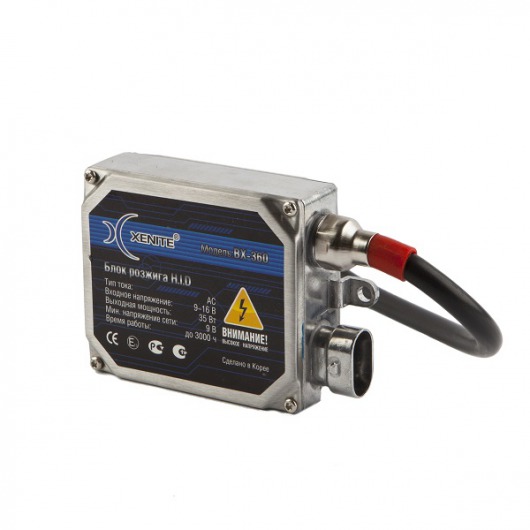 Блок розжига Xenite BX-360 (9-16V) AC - это современное устройство для ксенонового света. Благодаря инновационным технологиям, примененным при его разработке, этот блок можно устанавливать на любые автомобили для оптимизации работы ксенона. При включении света - блок дает напряжение в 25 000 вольт, тем самым разжигая ксеноновые лампы. Далее, когда ксеноновая лампа полность разгорелась, он просто стабилизирует напряжение.