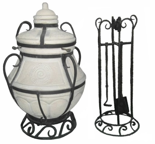 В отличие от большинства других тандыров в базовую комплектацию тандыра Аладдин мини как и у классического тандыра Аладдин также входят 2 подставки: круглая для самого тандыра и вертикальная для навешивания совка и кочерги, которая одновременно является и подставкой для крышки тандыра - это не только визуально подчеркивает красоту тандыра, но и обеспечивает дополнительное удобство пользования столь большим и тяжелым изделием.