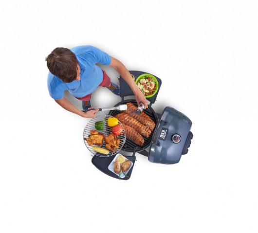В комплектацию входит: основной каркас гриля с крышкой, опорная система с двумя колесиками, основная решетка-гриль из чугуна и вспомогательная из нержавейки, выдвижной зольник, боковые складные столики, встроенные термометр, кочерга.