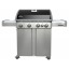 В комплектацию входит: основной корпус гриля с крышкой из нержавейки, чугунная основная решетка и стальная решетка вспомогательная, пять основных горелок и одна вспомогательная, складные боковые столы, фиксируемые колеса, встроенный термометр, лоток для жира.