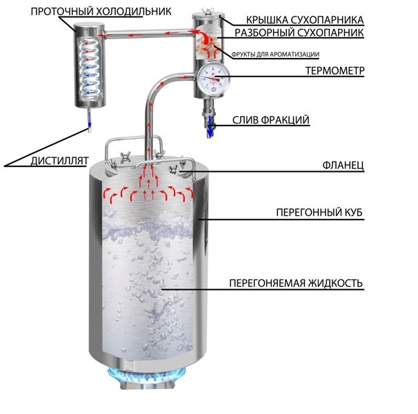 Сухопарник - емкость между баком и холодильником, предотвращает попадание вредных примесей в конечный продукт.