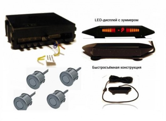 Цветное фронтальное табло индикатора (со встроенным звуковым зуммером) показывает расстояние до препятствия. Звуковой сигнал предупреждает о приближении к опасности, а динамик встроен в табло индикатора. Таким образом, при появлении опасного объекта вы увидите на дисплее индикацию расстояния до него и услышите звуковой сигнал. Звуковые сигналы различаются между собой в зависимости от удаленности препятствия.