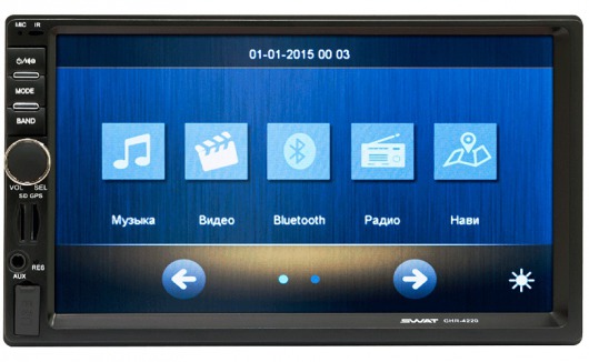 Автомобильная штатная магнитола с навигацией 2din SWAT CHR-4220 с Bluetooth и сенсорным дисплеем 7 дюймов – очень функциональное устройство. У автомагнитолы есть широкий набор мультимедийных технологий, которые позволяют выжать из устройства по максимуму. Ресивер способен выдавать звук на 4 колонки по 50 ватт. Есть возможность сохранения до 18 радиостанций на цифровом радио-тюнере. Кроме того, реализована возможность прослушивания аудиозаписей через карту памяти или блютуз. Дополнительно на магнитолу устанавливается навигационное ПО Навител (входит в комплект).