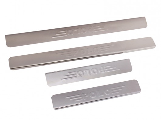 Накладки на металлические пороги дверей Volkswagen Polo с логотипом авто не только обеспечивают защиту верхней и боковой поверхности внутреннего порога, но и отлично вписываются в интерьер автомобиля, подчеркивая его стиль и индивидуальность. C монтажом проблем не возникнет: установка накладок на внутренний порог для фольксваген поло производится на штатные места с помощью скотча 3M.