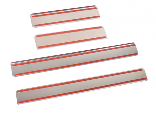 Накладки на металлические пороги дверей Lada Largus с логотипом авто не только обеспечивают защиту верхней и боковой поверхности внутреннего порога, но и отлично вписываются в интерьер автомобиля, подчеркивая его стиль и индивидуальность. C монтажом проблем не возникнет: установка накладок на внутренний порог для Лада Ларгус производится на штатные места с помощью скотча 3M.
