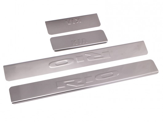 Внутренняя накладка на порог Kia Rio — это аксессуар автомобильного тюнинга, который защищает внутренний порог от механических повреждений при посадке и высадке из машины. Декоративные накладки с логотипом на внутренние пороги предназначены для автомобилей Киа Рио от 2013 г.в.