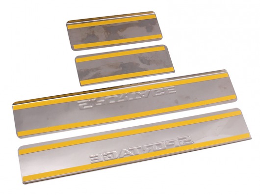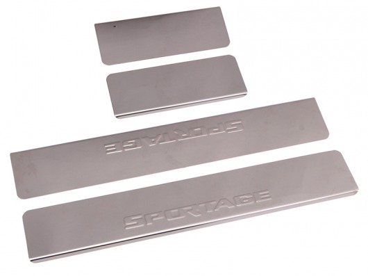 Накладки на металлические пороги дверей Kia Sportage с логотипом авто не только обеспечивают защиту верхней и боковой поверхности внутреннего порога, но и отлично вписываются в интерьер автомобиля, подчеркивая его стиль и индивидуальность. C монтажом проблем не возникнет: установка накладок на внутренний порог для Киа Спортейдж производится на штатные места с помощью скотча 3M.