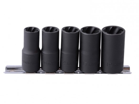 KING TONY 9TD035MR — это набор торцевых головок для поврежденных болтов и гаек, в который входит 5 предметов. Головки имеют специальную насечку, которая врезается в проблемный болт или гайку, помогая демонтировать их