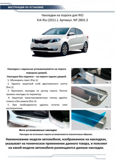 Вопросы и отзывы про Накладки на пороги для KIA Rio от 11 г.в. (Rival)
