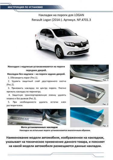 Данные накладки на внутренние пороги «Риваль» разработаны специально для автомобилей Renault Logan от 2014 г.в. и полностью повторяют их геометрию. Кроме того, накладки порогов двери Rival очень легко и быстро устанавливаются. И при этом надежно крепятся за счет плотного прилегания морозостойкого скотча.
