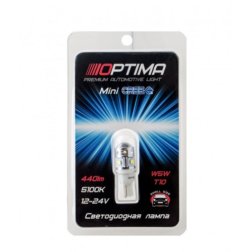 Светодиодные лампы Optima Premium W5W MINI CREE_XBD CAN 30W 12-24V 5100К – это габаритные лампы с увеличенной светоотдачей благодаря использованию технологии CREE. Такие лампы работают намного эффективнее, характеризуются более мощной светоотдачей.