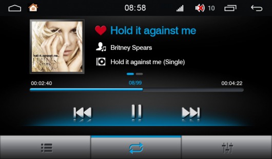 В аудиотракте мультимедийной системы использован 11-полосный эквалайзер. Встроенный усилитель мощностью 4x45 Вт построен на MOSFET транзисторах, а для любителей более мощного звука предусмотрены линейные выходы - фронт, сабвуфер.