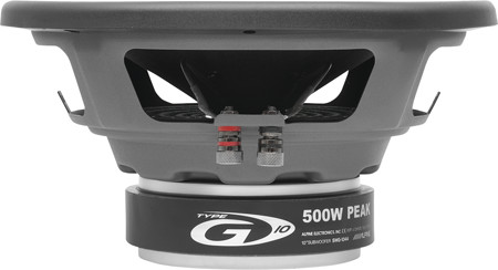 Выбирать сабвуфер по размерам магнита, не стоит. Если магнит большой, то это не значит, что сабвуферный динамик будет хорошо звучать. В топовых и мощных моделях сабов используется неодимовый магнит, который очень мал по габаритам и при этом очень эффективен. Гораздо важнее то, что находится с лицевой стороны динамика. Это диффузор и подвес. Лучший вариант изготовления этих компонентов: для диффузора бумага или прессованный картон с обязательной водоотталкивающей пропиткой (сабвуфер Alpine SWG-1044 обычно работает в суровой среде и должен быть максимально защищен), для подвеса диффузора — мягкая резина или каучук, но ни в коем случае не тряпка.