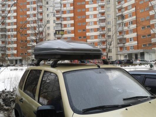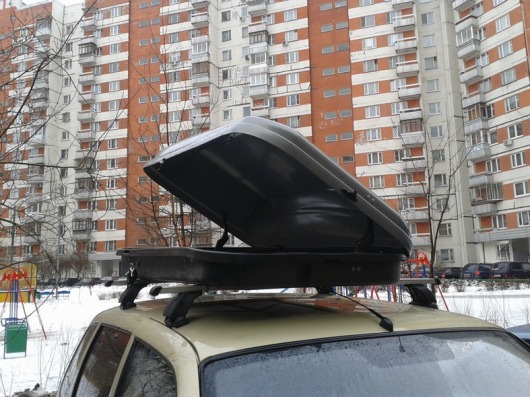 Обратите внимание! Автобокс на крышу устанавливается не на саму крышу автомобиля, а на багажник. Сначала необходимо закрепить на крыше поперечины багажника, а потом уже на них ставится бокс.